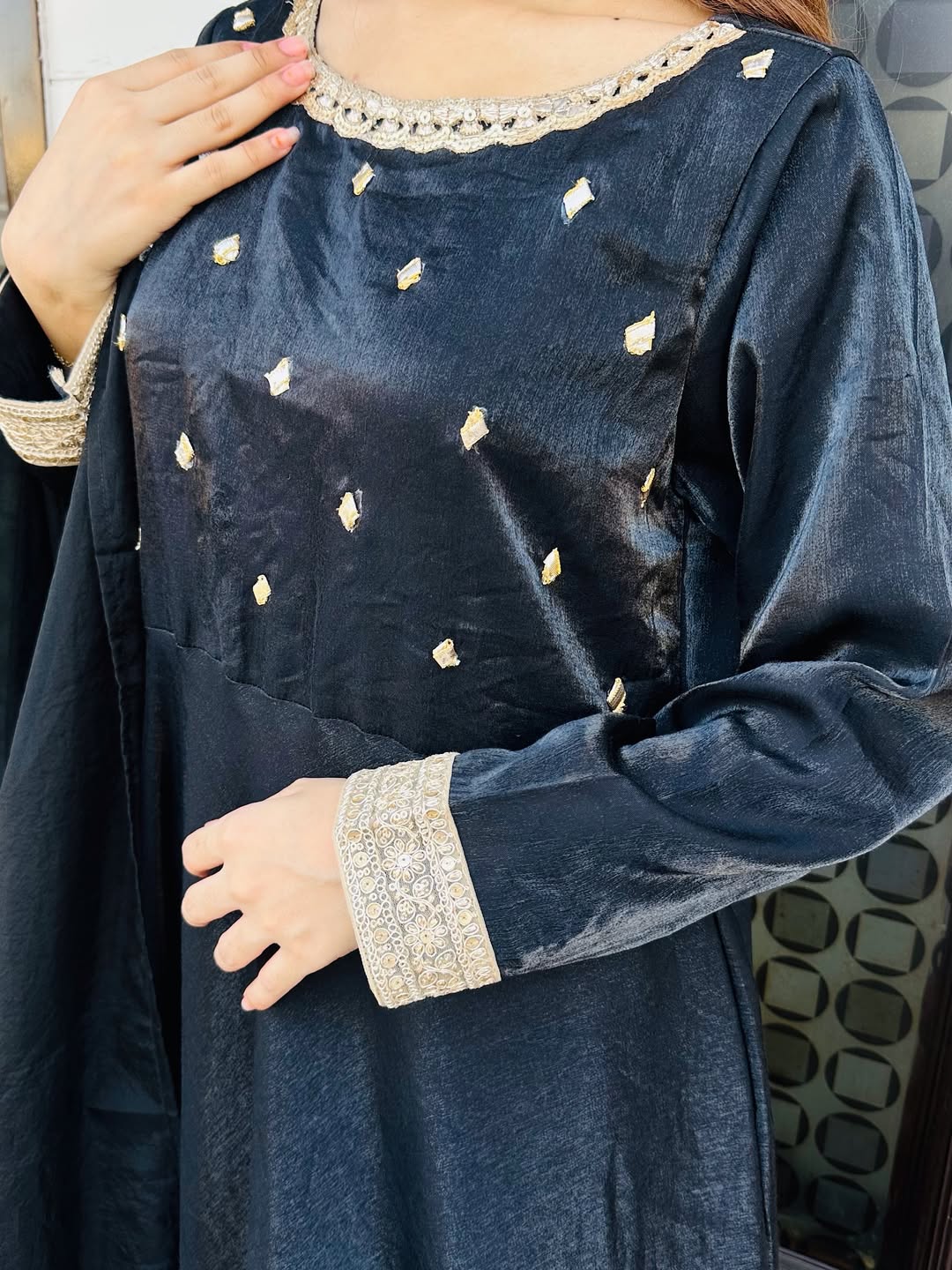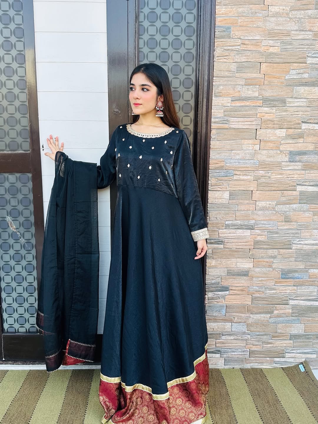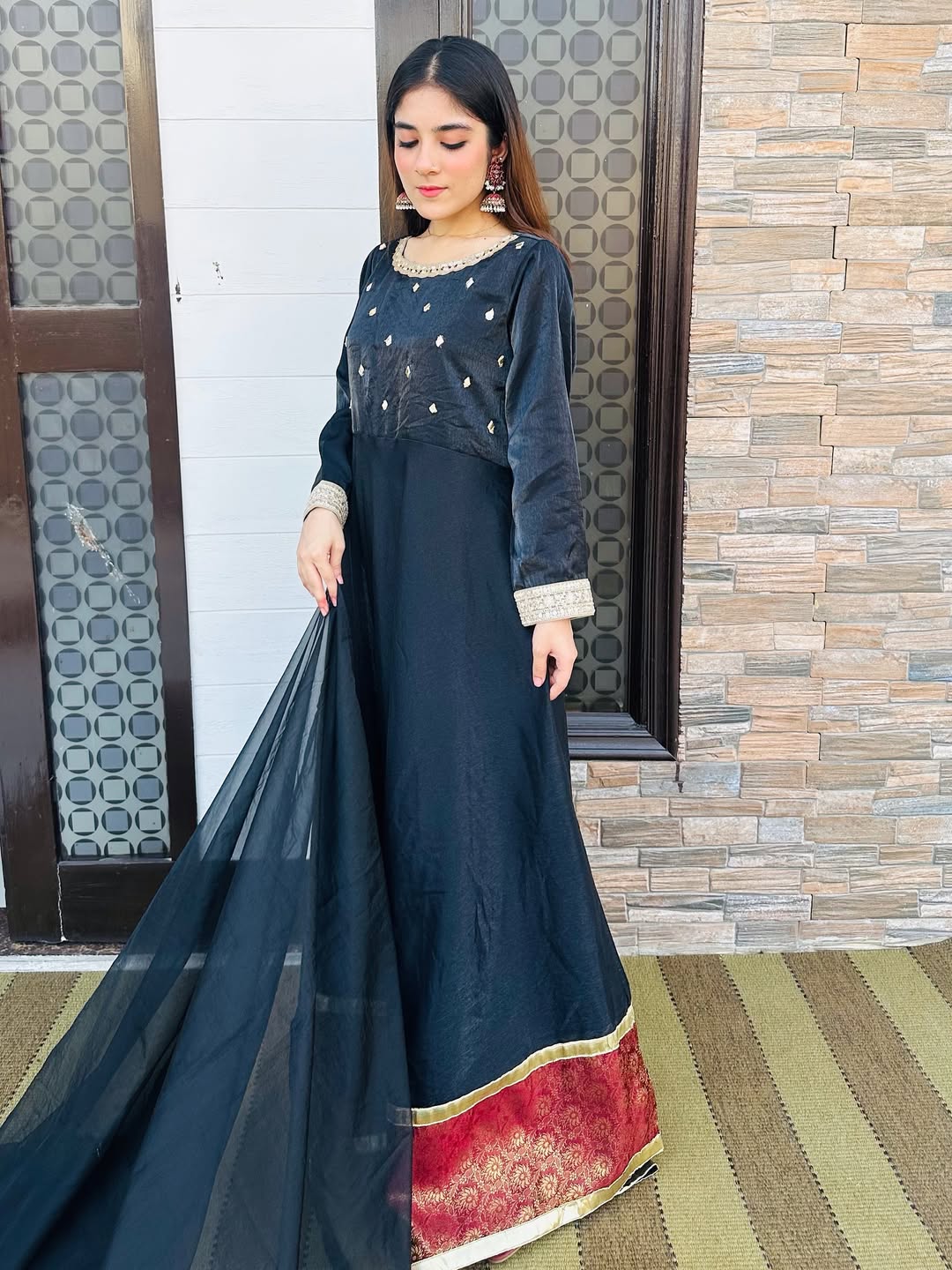 Siyaah- silk frok with banarsi border with gotta work and organza dupatta adds a perfect look for this wedding season-